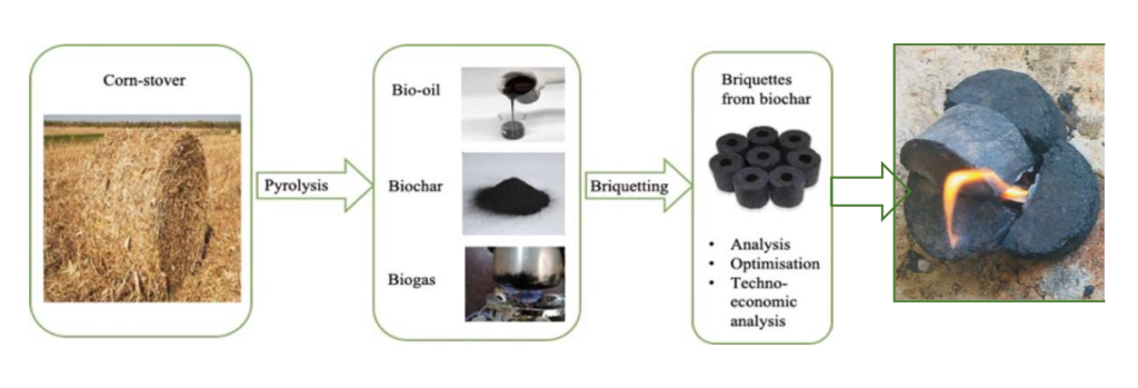 Figure: Beneficiation of maize harvest waste (Ngubane and Oyekola, 2023).